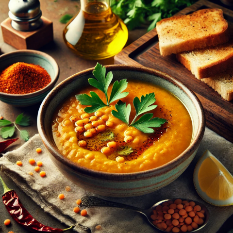 Sirve la sopa caliente, decorándola con un chorrito del aceite de chile preparado y espolvorea perejil fresco por encima. Puedes acompañarla con pan tostado o pan plano.