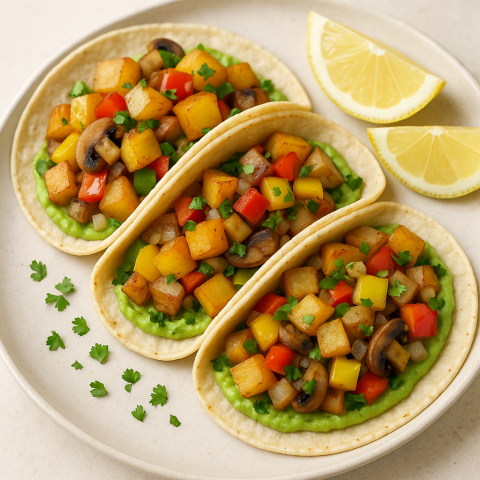 - Arma los tacos: Unta una cucharada de salsa cremosa de aguacate en cada tortilla. Añade los vegetales asados encima y espolvorea con cilantro fresco.