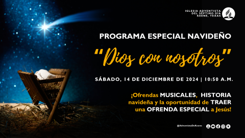 Este sábado 14 de diciembre, durante nuestro Culto de Adoración, celebraremos juntos el evento que cambió la historia: “Dios con nosotros”. Será un tiempo de profunda alabanza, con hermosas ofrendas musicales que nos elevarán en adoración y una conmovedora historia navideña que nos recordará el verdadero significado de esta temporada.